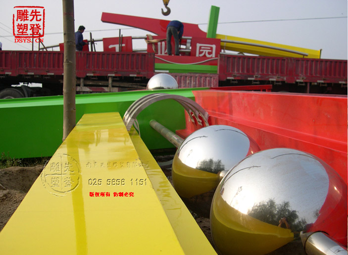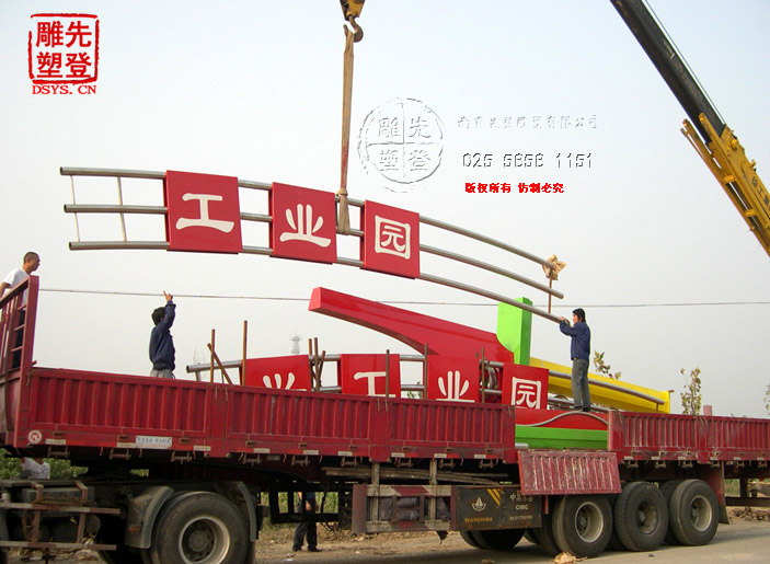 成功案例:不銹鋼大門雕塑安裝于天津市武清區(qū)陳咀鎮(zhèn),高度10米,跨度15米,不銹鋼大門雕塑