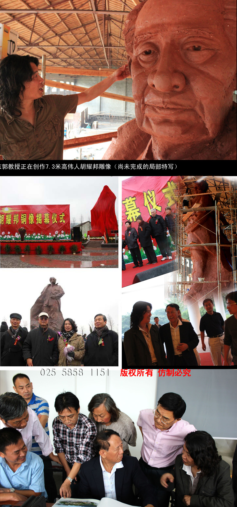 原中共中央統(tǒng)戰(zhàn)部副部長(zhǎng)、全國(guó)工商聯(lián)黨組書記胡德平和江蘇文化界人士集體合影東郭教授正在創(chuàng)作七米三高偉人胡耀邦雕像(尚未完成的局部特寫)